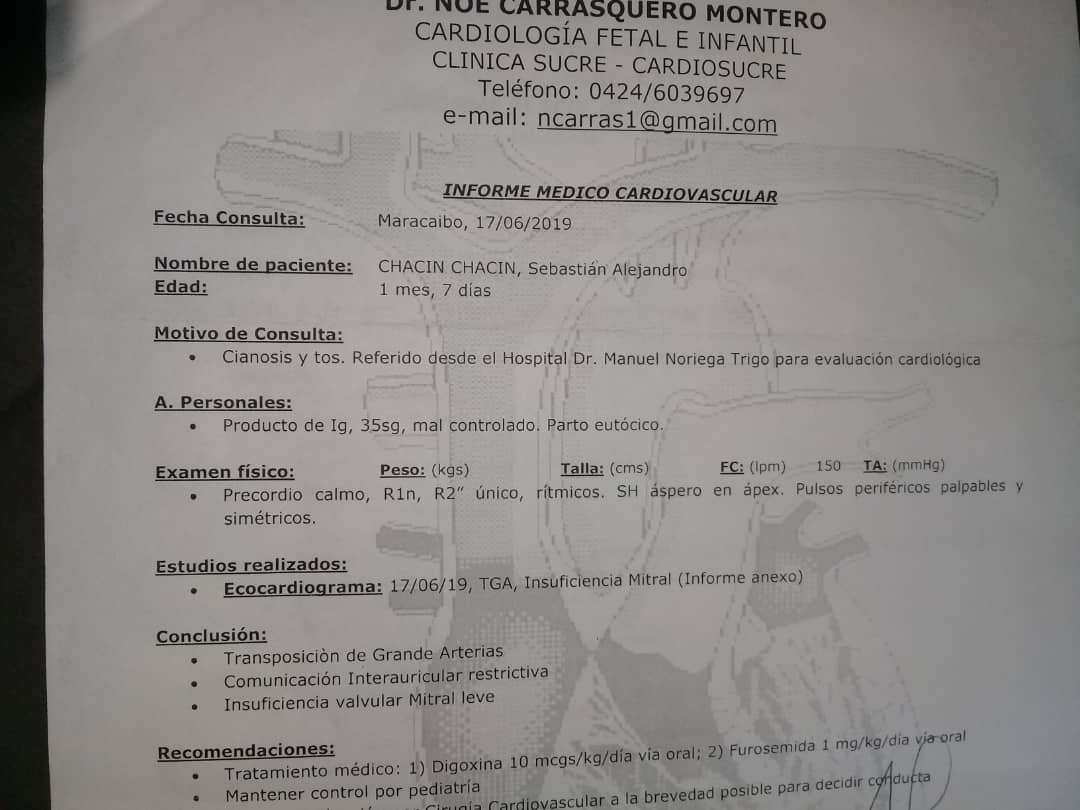 Mi presidente bb de mes y medio necesita de su ayuda necesita ser operado del corazón por favor es urgente. Sus padres no tienen los medios. Ellos viven en Maracaibo