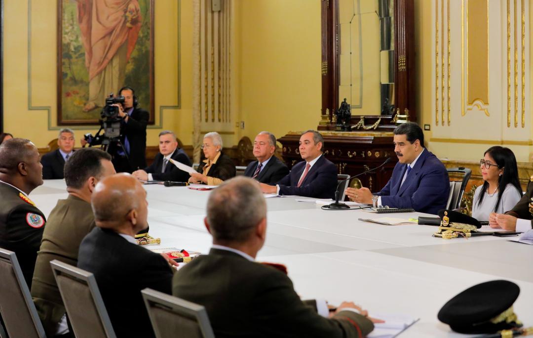 En cumplimiento del artículo 323 de nuestra Constitución, convoqué al Consejo de Defensa de la Nación para conducir, de forma colectiva y en unión Cívico–Militar, la actual coyuntura de graves amenazas por parte del gobierno guerrerista de Colombia en contra Venezuela. pic.twitter.com/GIYRqM1iue