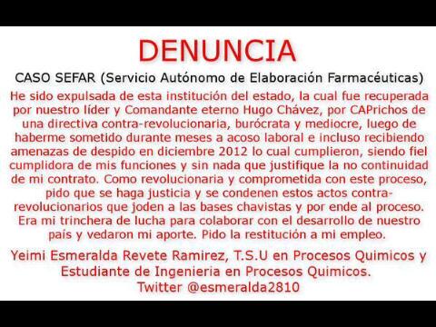 .@NicolasMaduro Por esto Prohiben mi acceso a CDI y Botica en SEFAR! YO SOY PUEBLO! http://www.aporrea.org/movil/actualidad/a164399.html …pic.twitter.com/ubKr5BnKZl