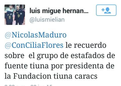 @NicolasMaduro@ConCiliaFlores le recuerdo sobre el grupo de estafados de fuente tiuna por presidenta de la Fundacion tiuna caracs -
