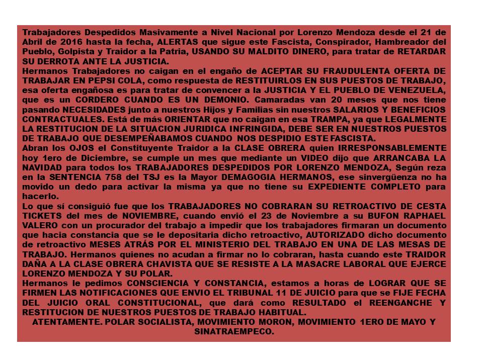 HERMANO PRESIDENTE .@NicolasMaduro ANUNCIE LA CAÍDA DEL PEZ GRANDE DE FEDECAMARAS QUE ES LORENZO .@EmpresasPolar ACTOR INTELECTUAL D LA GUERRA ECONÓMICA CUENTA CON LOS TRABAJADORES DE BASE .@PolarSocialista QUIENES TENEMOS LAS PRUEBAS PARA ACABAR CON ESTE GOLPISTA SOS .@dcabellorpic.twitter.com/LIjRlygFcC