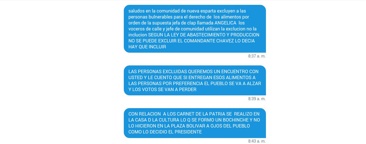 CAMARADAS ESTO HAY QUE RETWITEARLO URGENTE LOS APATRIDAS SE ESTAN ADUEÑANDO DE LOS ALIMENTOS DEL PUEBLO POR MEDIO DE LOS CLAP EXCLUYEN A LOS ANCIANOS Y A LOS MAS BULNERABLES OJO DE AGUILApic.twitter.com/bMvy8uobXg