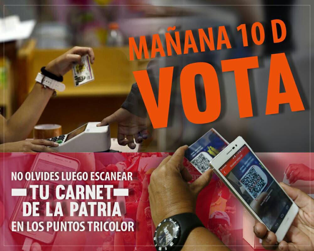 #MañanaVotaPorLaPatria Luego de votar este #10Dic NO olvides escanear tu @CarnetDLaPatria en los Puntos Tricolo #EleccionesMunicipales2017pic.twitter.com/FGIxry3JbJ