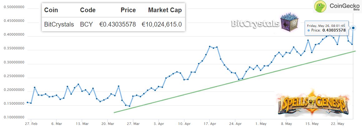 #BitCrystals BCY further on the rise. And soon a new#SpellsOfGenesise#app#game release for more#batlle sessions…#gaming#cardpic.twitter.com/EOpB2OENrG