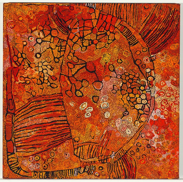 Water and wallaby dreaming 1981 Artist Dick Pantimus Tjupurrula Australia circa 1940 - 1983 Language group Luritja, Central Desert region synthetic polymer paint on linen Dimensions 181.3 x 182.6 x 2.0 cm stretcher Art Gallery of NSWpic.twitter.com/zXDfQ5kR7g