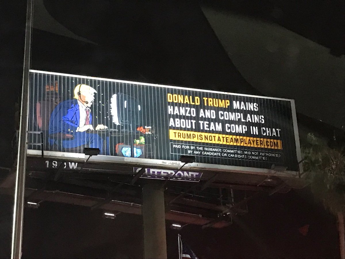 APPARENTLY IN MY AREA THERES A BILLBOARD THAT SAYS "DONALD TRUMP MAINS HANZO AND COMPLAINS ABOUT TEAM COMP IN ALL CHAT" I NEED TO SEE ITpic.twitter.com/Au70OthAAW