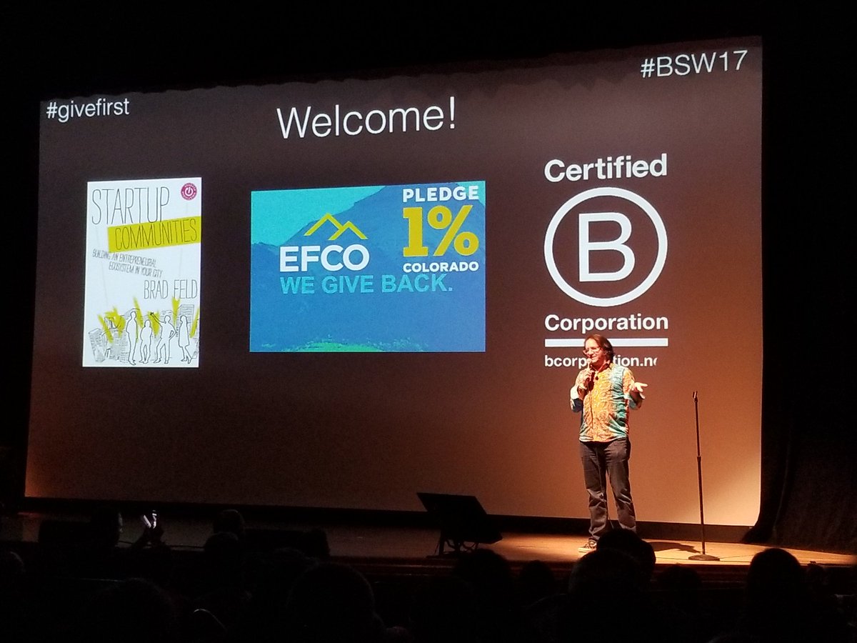 #BSW2017 with thanks to@bfeld@Pledge1CO@BCorporation@foundrygroup@techstarspic.twitter.com/RUf0Or0S8W