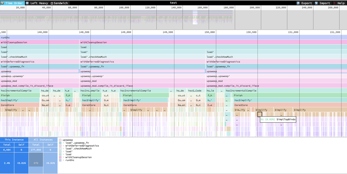 Proof of concept: the new best way to view GHC profiles - https://speedscope.app pic.twitter.com/KWYHsVcIjy