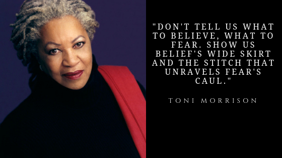 "Don't tell us what to believe, what to fear. Show us belief's wide skirt and the stitch that unravels fear's caul." — Toni Morrison