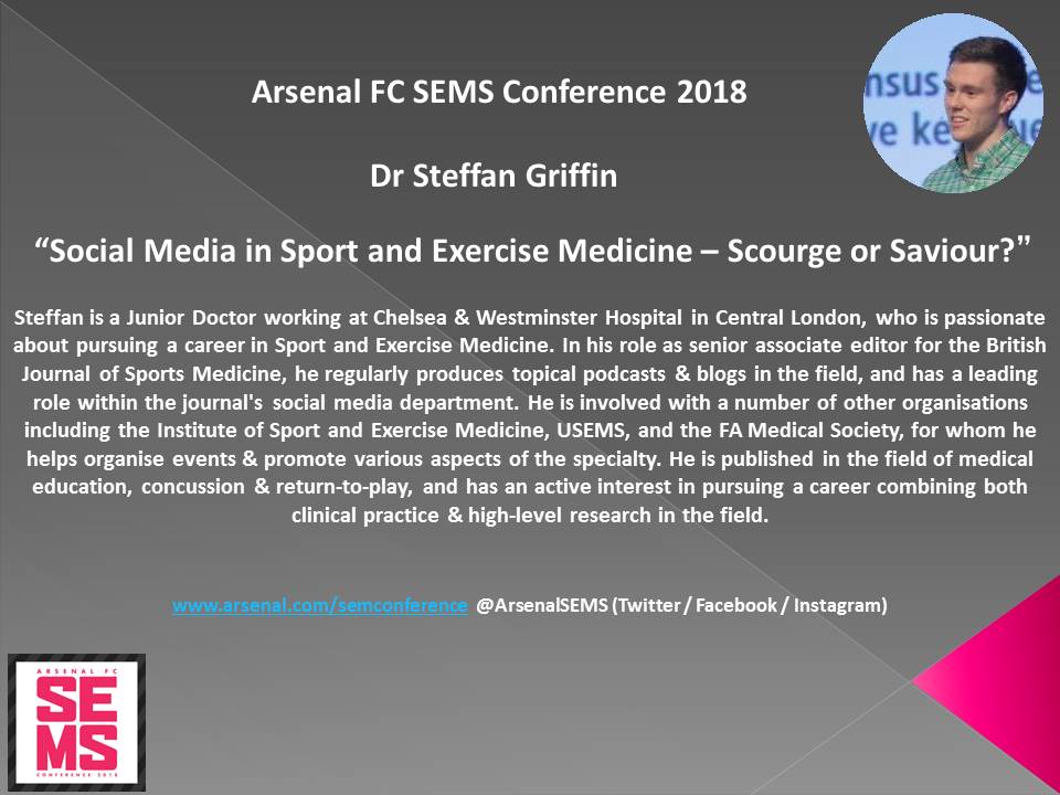 @SteffanGriffin presents at#AFCSEMS18 on "Social Media in Sport and Exercise Medicine - Scourge or Saviour?"pic.twitter.com/HaqfA0xoHr