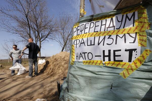 Sign at a roadblock between #Donetsk & #Kharkov: "Referendum. No to NATO's fascism." (RIA) #Ukraine #Донецк #Харьковpic.twitter.com/TMjiZeoEDX