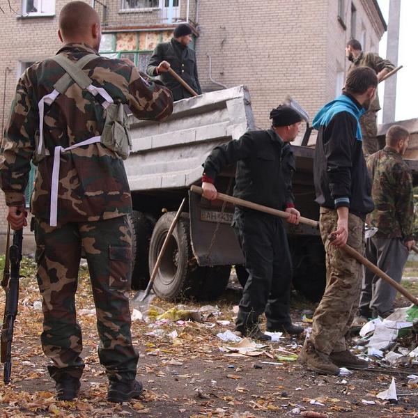 POWs from the pro-Kiev Donbass battalion clean up #Ilovaisk. Photos: @sashakots | Пленные бойцы батальона #Донбасс.pic.twitter.com/8lwYFcjVqW