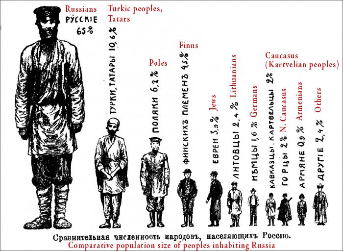 Peoples of Russia infographic (Rubakin, #Russia in Numbers, 1912; 1897 census data). No distinct Ukrainians?