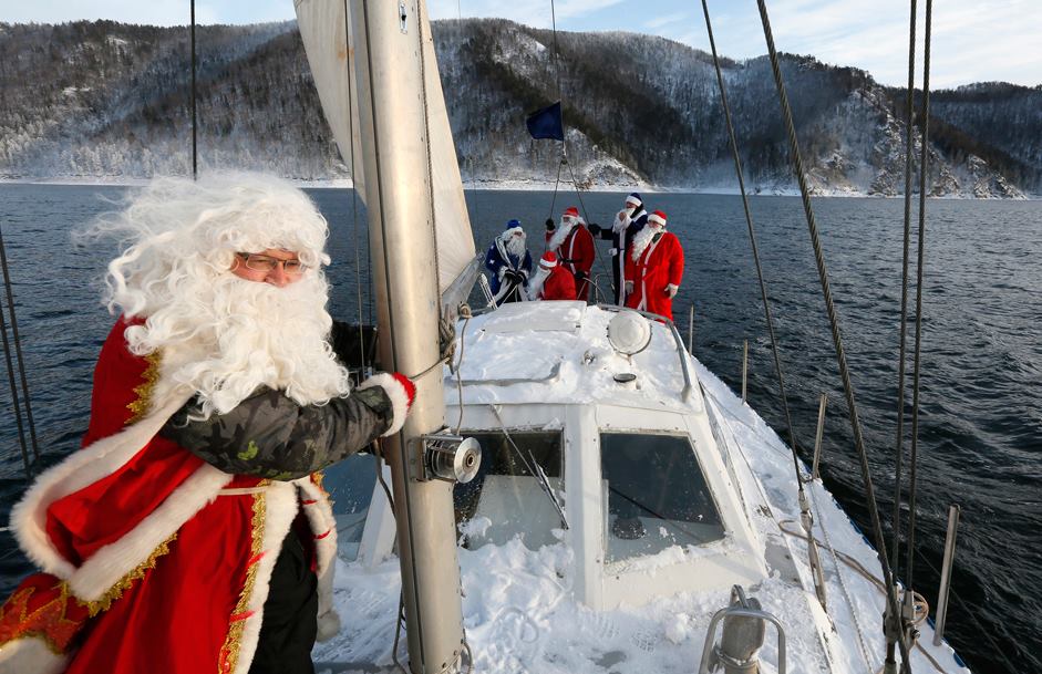 Meanwhile in #Russia: (Grand)father Frost (in plural) sails Siberia's Yenisei in a refreshing -18 C/0 F (via RBTH).pic.twitter.com/tkxOKIH1MW