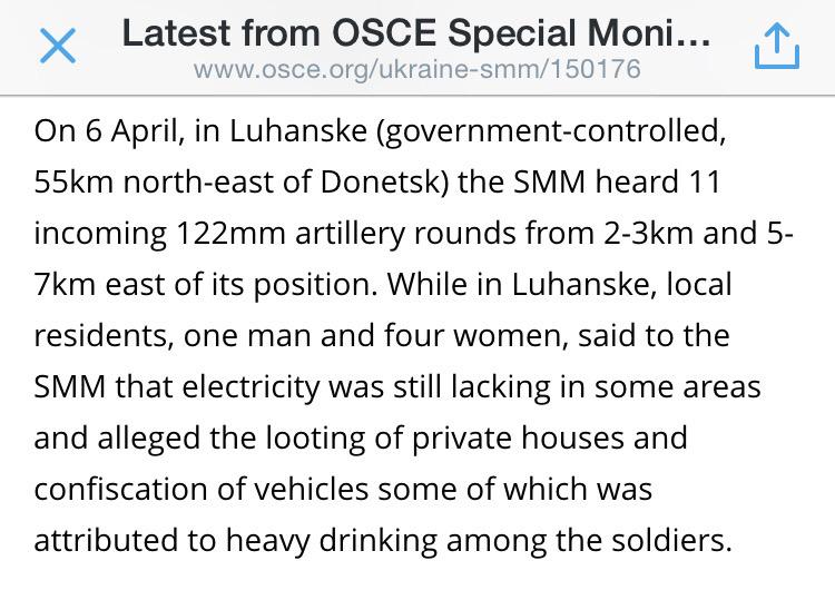 OSCE: looting & drinking by #Ukraine's soldiers, arbitrary denial of border crossing, UA pulling up heavy machinery.pic.twitter.com/AFjVihWROq