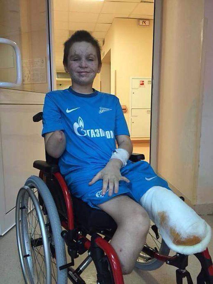 10yo Vanya Voronov, who lost both legs & an arm in #Donbass shelling, got to pet a tiger (he lost most eyesight too).pic.twitter.com/5kBKQ7grDT