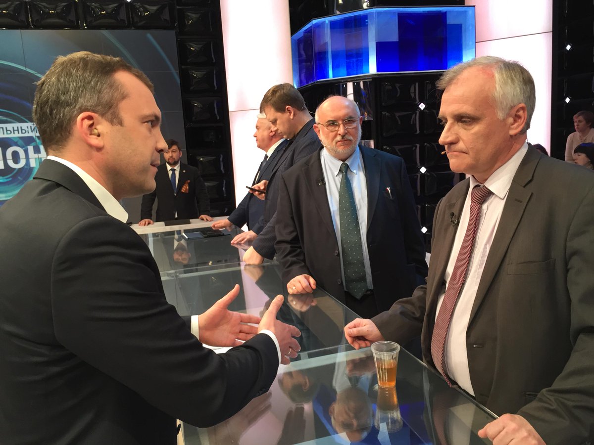 Ведущий "Специального корреспондента" Евгений Попов и директор Информационного бюро НАТО в России Роберт Пшельpic.twitter.com/Acus8lKqfx
