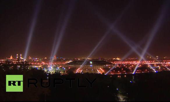 Anti-aircraft searchlights over #Moscow - then and now in commemoration of #WWII. #Russia #Победа70 #Victory70pic.twitter.com/lUsTOa9cIb