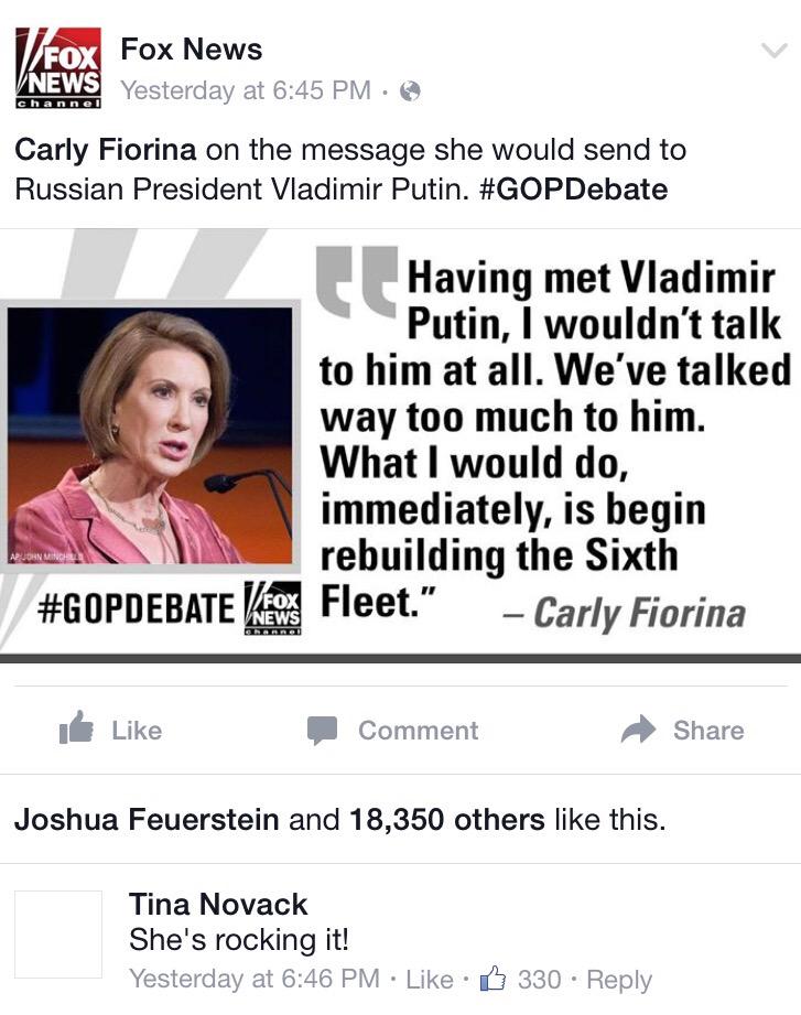 @NinaByzantina@marcelsardo@CarlyFiorina Darling, can't you hear that americans R fed up with wars? Be realistic!pic.twitter.com/9RFPB71sGd
