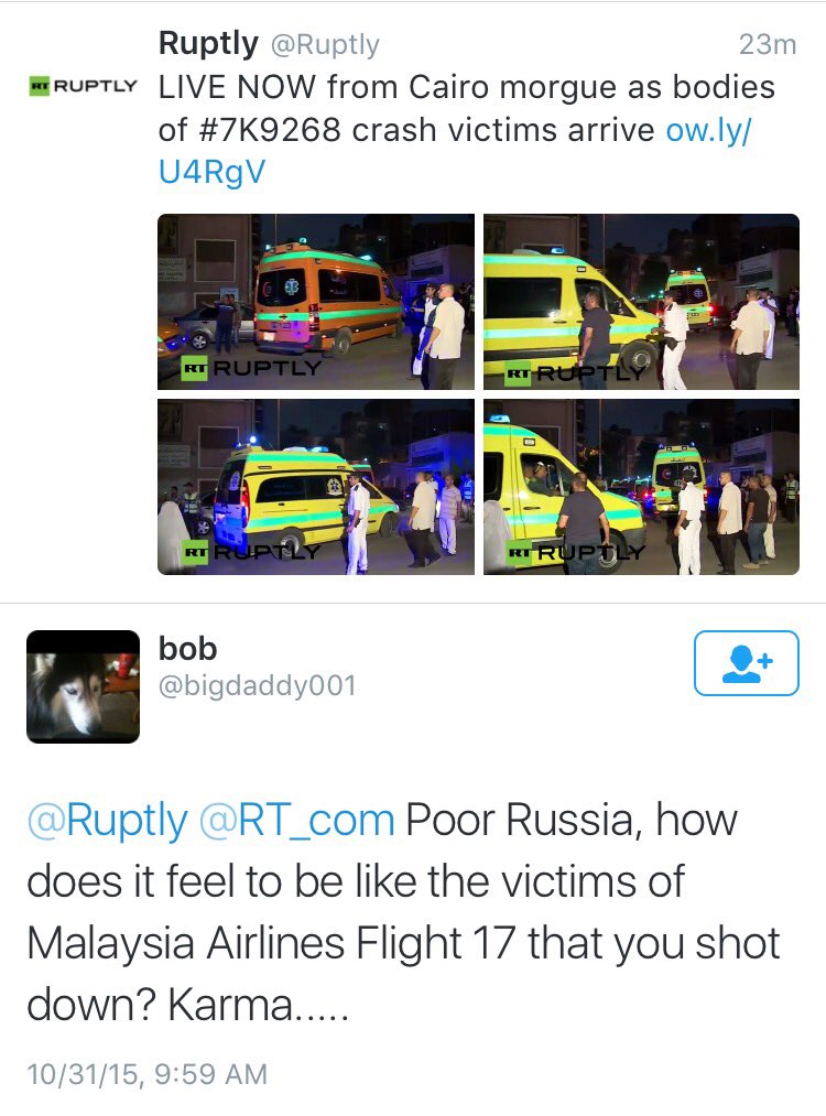 @Malinka1102 Seems to be. Reported it. Twitter is filled with this kind of gloating beneath every news item. - End of conversation