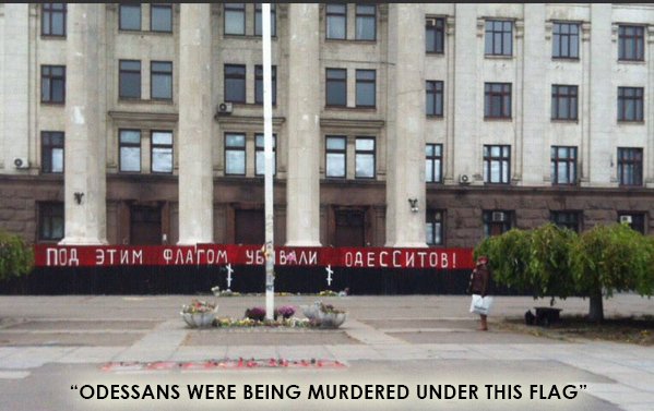 "#Odessa|ns were being murdered under this [UPA/Right Sector] flag" - response to repainting fence