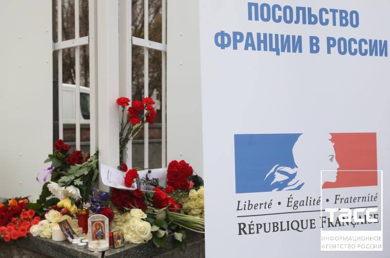 Flowers and candles continued to be brought to #France's embassy in Moscow, #Russia throughout the day