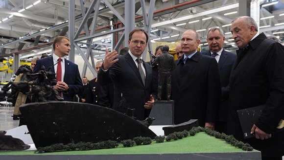 #Putin examines the model of a monument to Mikhail Kalashnikov, who passed away 3 years ago, which will open in Moscow in January 2017.pic.twitter.com/OhvRWEDy4V