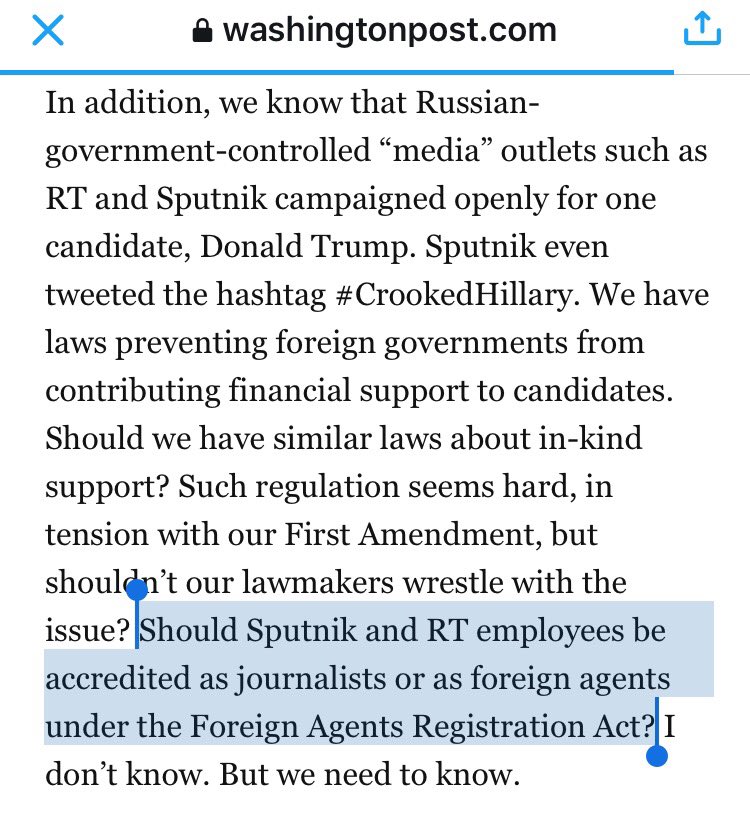 So Russian "Media outlets" are not entitled to have their own viewpoint on US or other foreign elections?