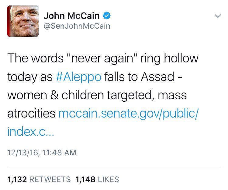 But Jonn McCain has accepted a kick in the ass from Putin in #Aleppo.