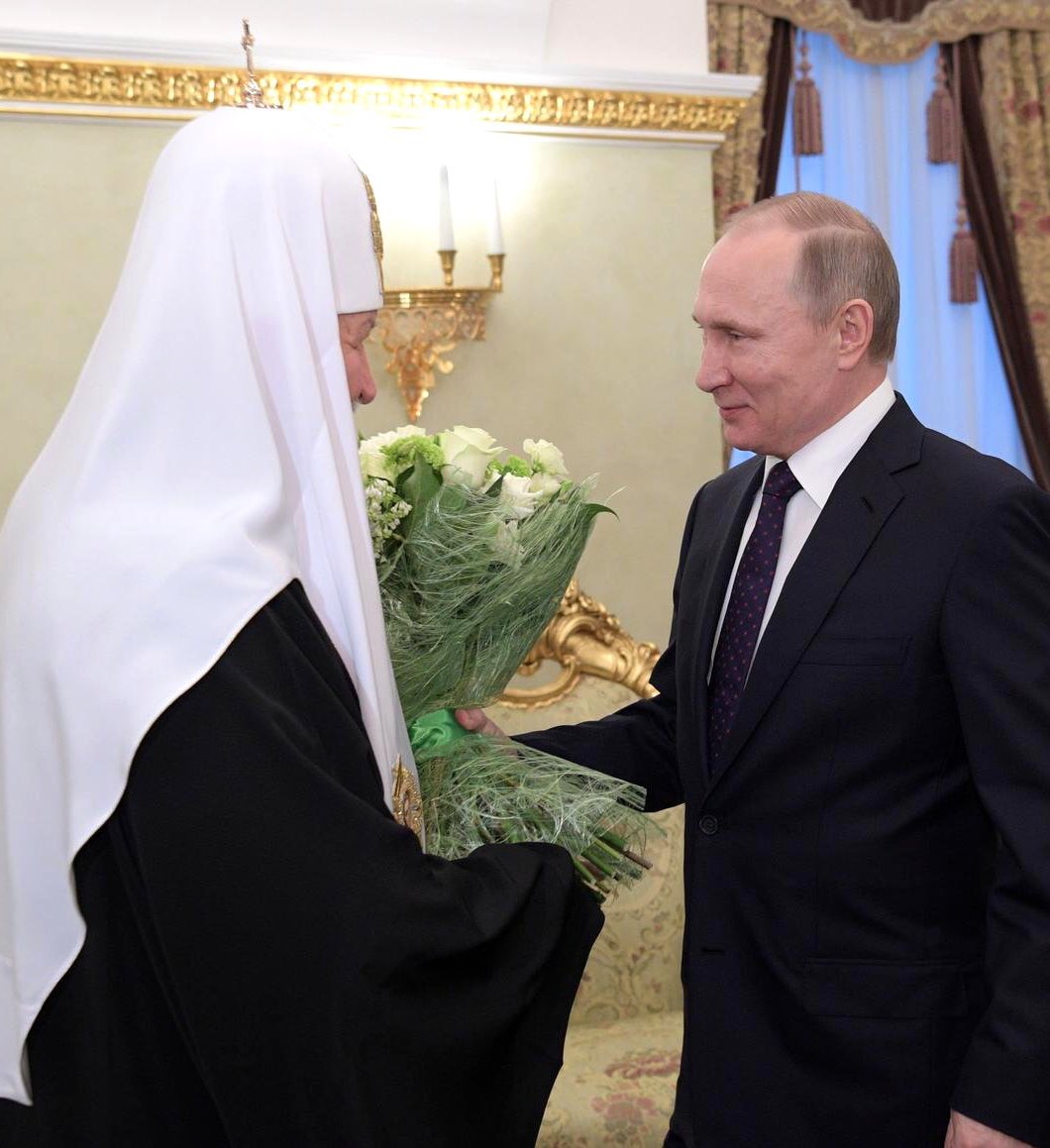 Putin congratulates the Patriarch on his enthronement anniversary and symbolically underscores our Byzantine symphony of powers.pic.twitter.com/UzHVywZPCl