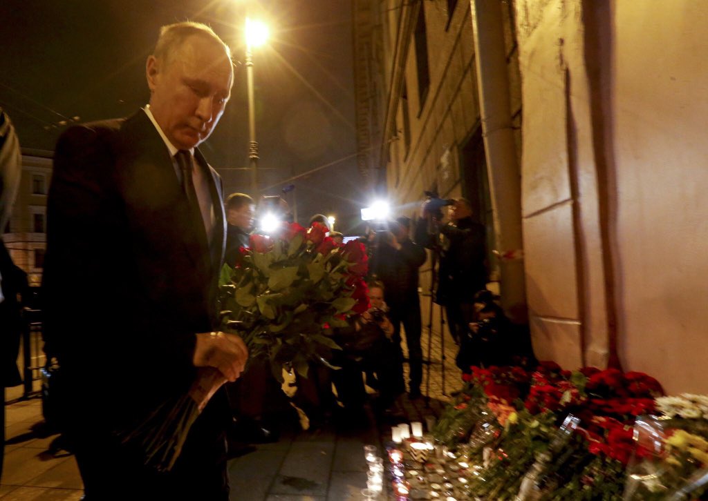 Putin leaves flowers outside blast site in St. Petersburg.pic.twitter.com/dLEdd91XOl