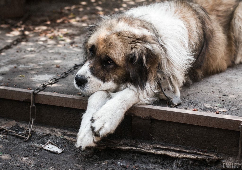 A subtly piercing image: this dog's owners were killed earlier this week by shelling of Petrovsky district in Donetsk. Photo: Dan Levy.pic.twitter.com/QJAPSpjugO