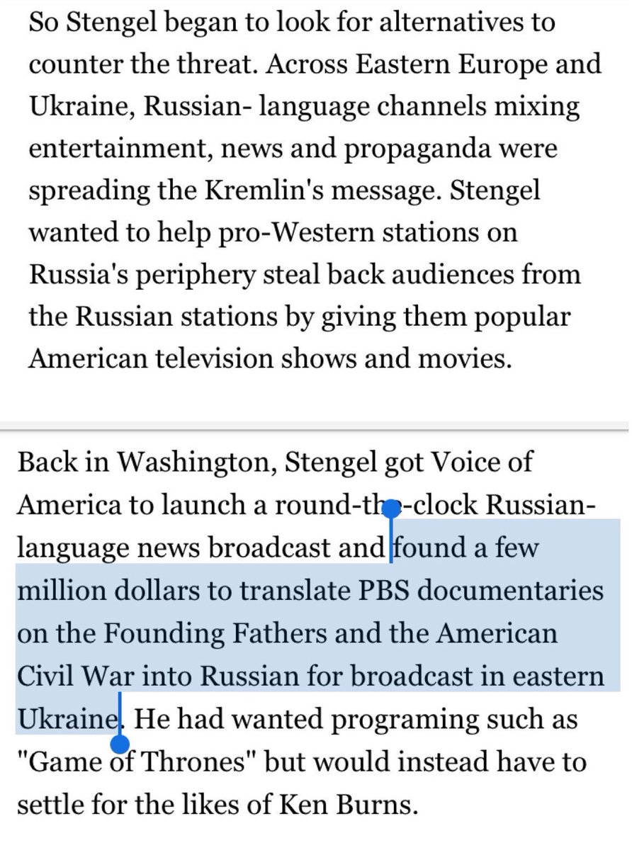 Lol wow. Why? Does this mean that PBS documentaries are propaganda??? What is going on? Also couldn't they just use Google translate and one Russian language speaker? A few million dollars is a lot of money for a couple http://documentaries.how many docs?