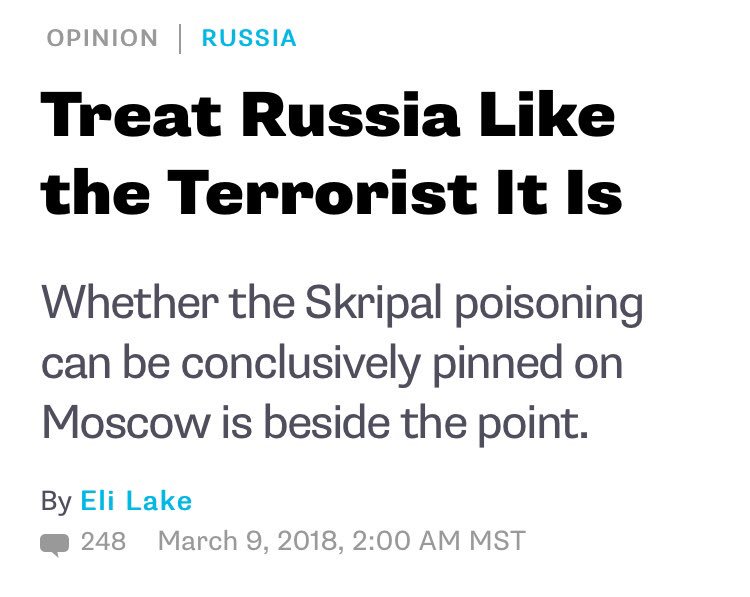 So whether the poisoning is even down to Russia is beside the point: let's fight her for upsetting Israel's ambitions in the middle east. The man's a member of the tribe or is in their pay.