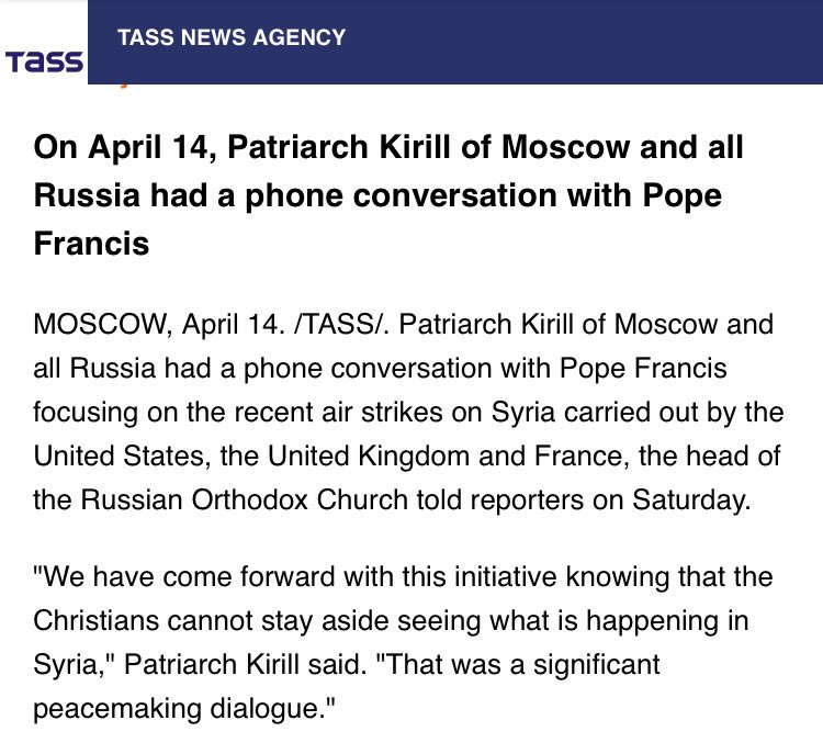 He called the Pope. That's nice and all, but this isn't the Pope that's going to do anything.