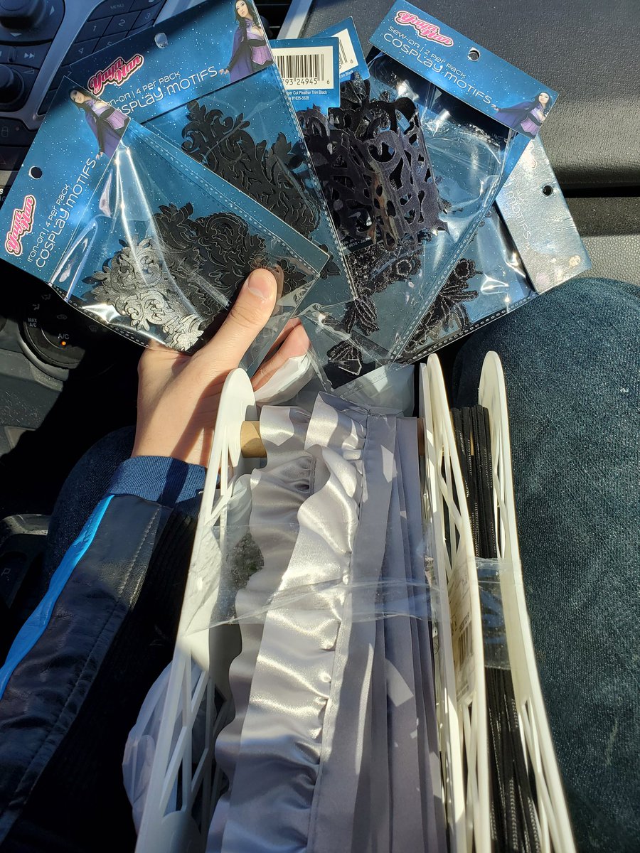 My local stores closing this week so I got some things for the distant future. Some cording and this bolt of silver trim ruffles that I plan on seam ripping the ruffle part off and just using it as silver bias. Also bought all the yaya motif pleather/lace they had lolol.pic.twitter.com/TvT7iuSPC3