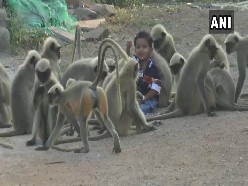 Karnataka: A 1-and-a-half year boy befriends monkeys and feeds them regularly in Hubli. His family says he is woken up by monkeys everyday at 6 in the morning who return after playing and being fed by him, adds that they have never bitten him.pic.twitter.com/e0WThRmIG5