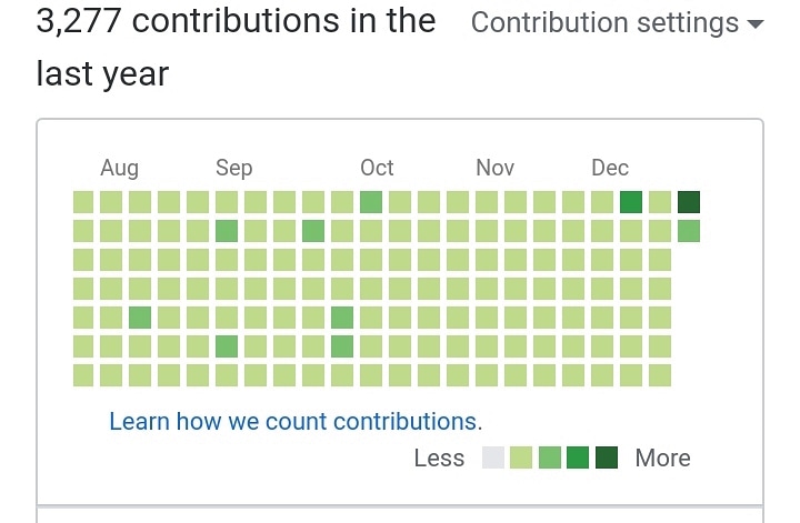 #301DaysOfCode Working on@github with holiday spirit - 3600 contributions in 2019 completed - Do follow if you like :) http://www.github.com/NishkarshRaj#GitHub#Git#OpenSource#100DaysOfCode#linux#webdev#javascript#Python#html#NewYears2020#CodeNewbie#DevOpspic.twitter.com/NQcarWoutj