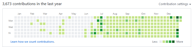 #301DaysOfCode 3500 contributions@github 2k19 Difference between the two halves amazes me. http://github.com/NishkarshRaj#github#git#Linux#100DaysOfCode#OpenSource#DevOps#CodeNewbie#hourofcode#fossasia#FOSS#technology#Developer#opengenus#programmer#Developerpic.twitter.com/svXSloba77