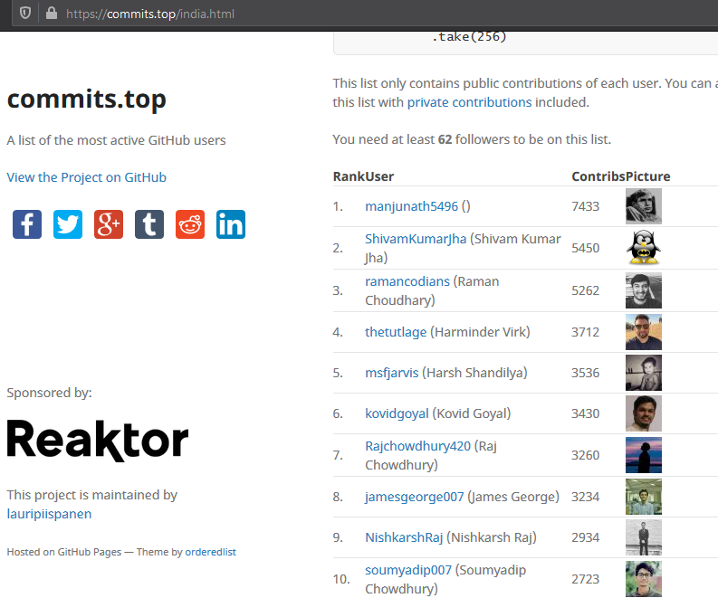 I could not make it to the 'Top 10 Most Active GitHubbers from India in 2019' due to lack of followers but I would have been 7th overall. Lets hope for a better 2020 :) https://commits.top/india_private.html …