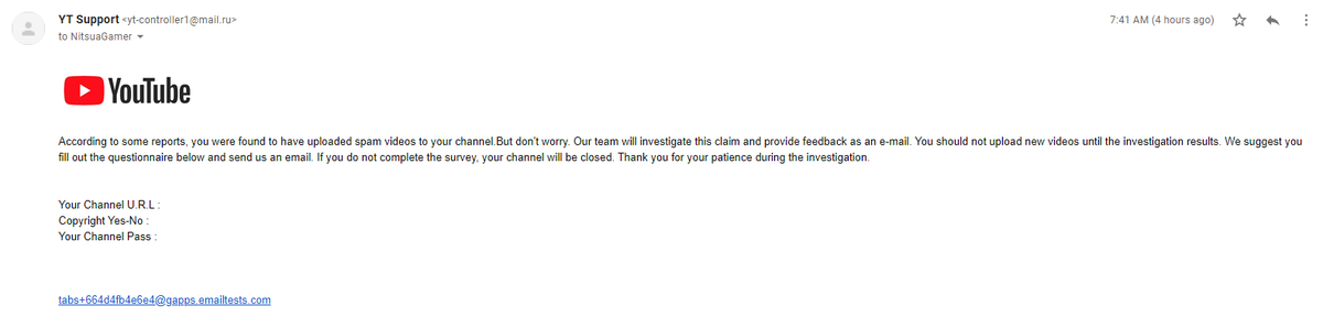 Hey @TeamYouTube I got this email and it looks suspicious and unofficial. Is this a fake?pic.twitter.com/2QnN0oaE6c