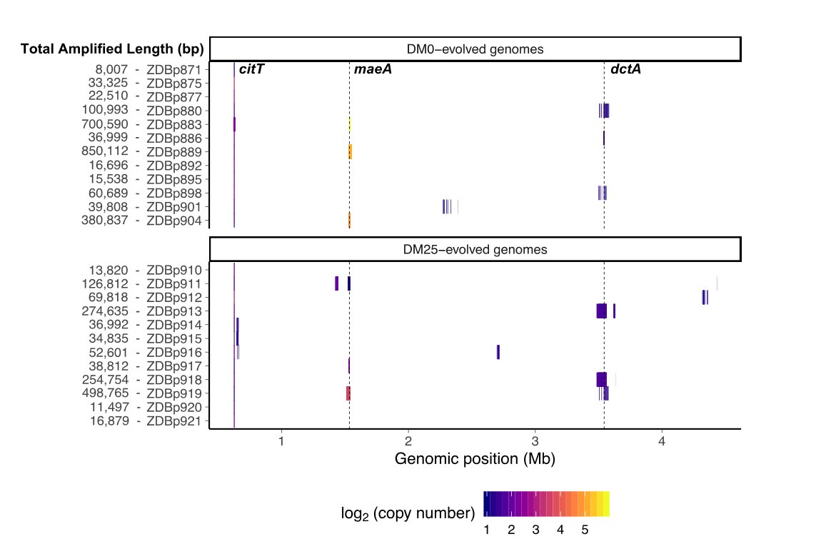 We also found parallel amplifications in six of the genomes. Among the amplifications, maeA, was always included. Competition assays revealed that this gene was highly beneficial, conferring a fitness advantage upwards of 25%. 9/pic.twitter.com/a4n9rQVBfn