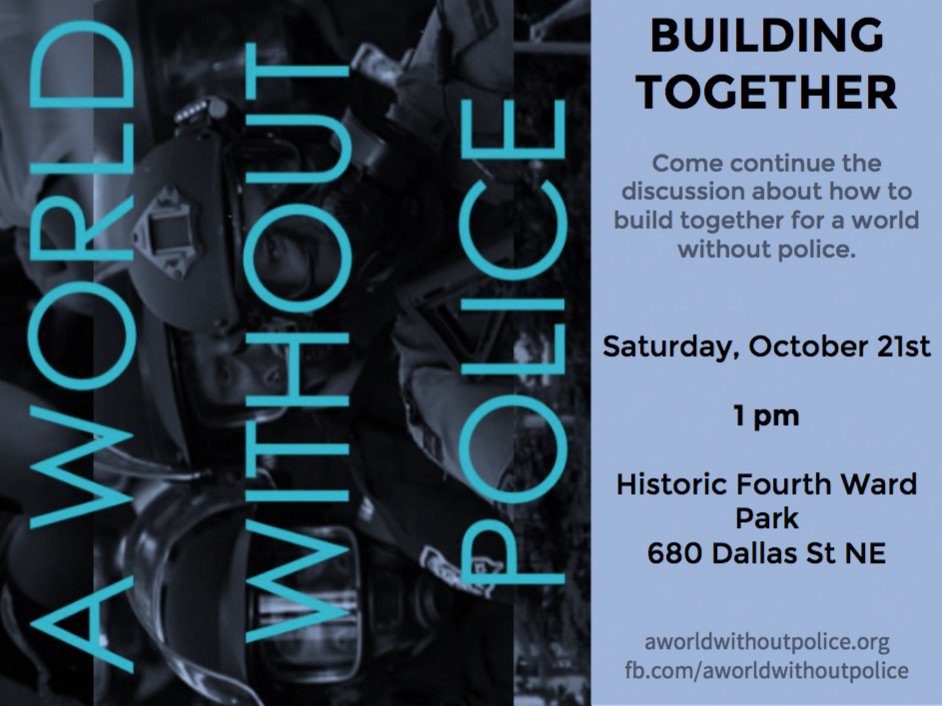 Saturday at 1PM at Historic Fourth Ward Park, come organize together in Atlanta. For a world without police https://www.facebook.com/events/1657429511215500/ …pic.twitter.com/7kKdViUF8r