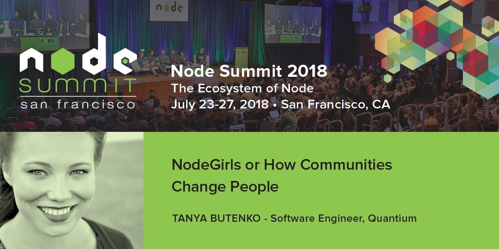 #NodeSummit and hear Tanya Butenko (@butenkome) from@quantiumau and of@NodeGirlsSydney fame present "NodeGirls, or How Communities Change People" - Learn more at http://www.nodesummit.com pic.twitter.com/nyNlW35VWm