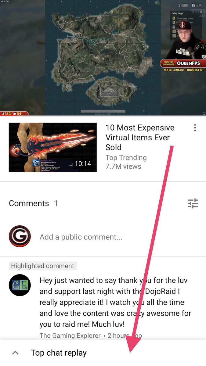 Hello @ytgamingfam @TeamYouTube , small bug with new live chat replay on mobile. I can't reply or like a posted comment. It gets hidden behind the top chat bar indicator ( shown in photo ) love the feature though! Thx!pic.twitter.com/7KG62G5kR0