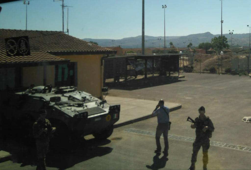 Nos encontramos compañía a la entrada del CARA de Mineo. Habrán venido a ocuparse de las denuncias de violencia sexual, tráfico de drogas, robo y prostitución que tienen lugar en su interior...