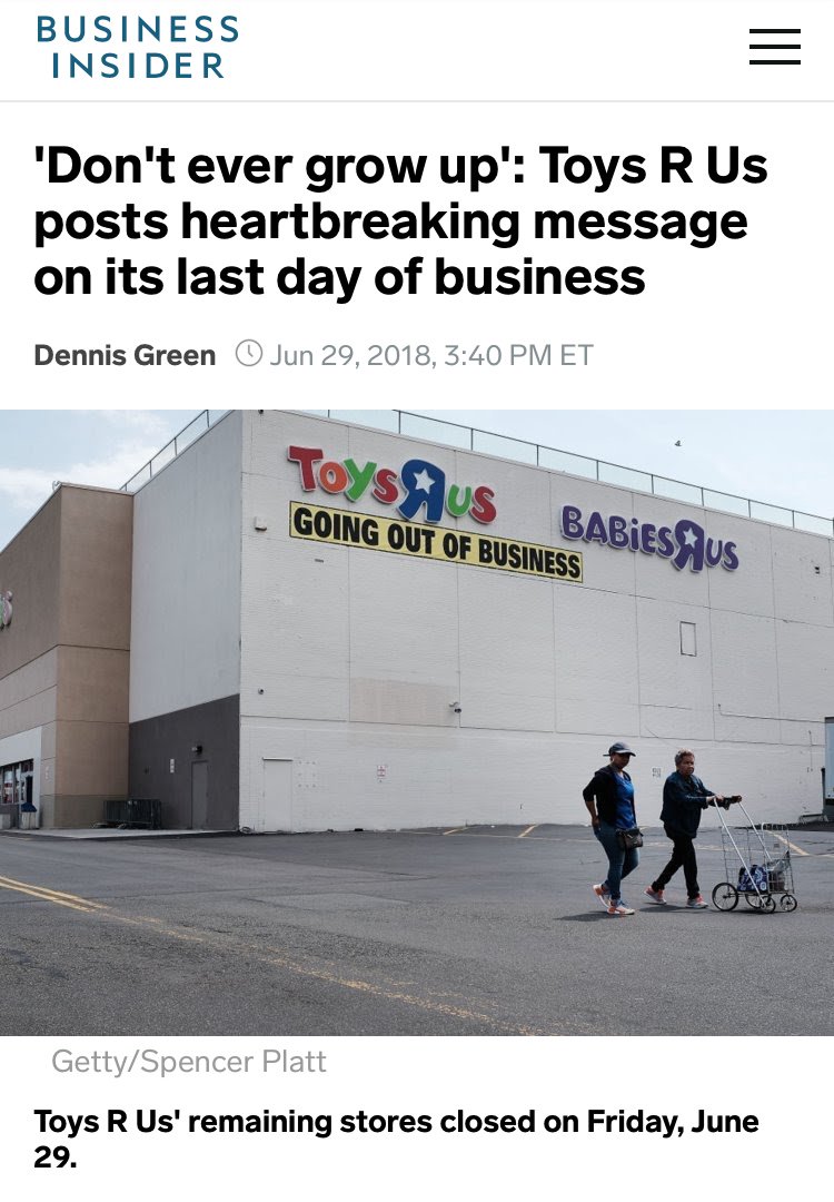 #BusinessInsider@businessinsider@ToysRUs The toy store that brought memories for millions of children and adults is coming to an end.#storytelling#supercoil#cash#creativity#control#DennisGreenpic.twitter.com/dzb9Sf3NnT
