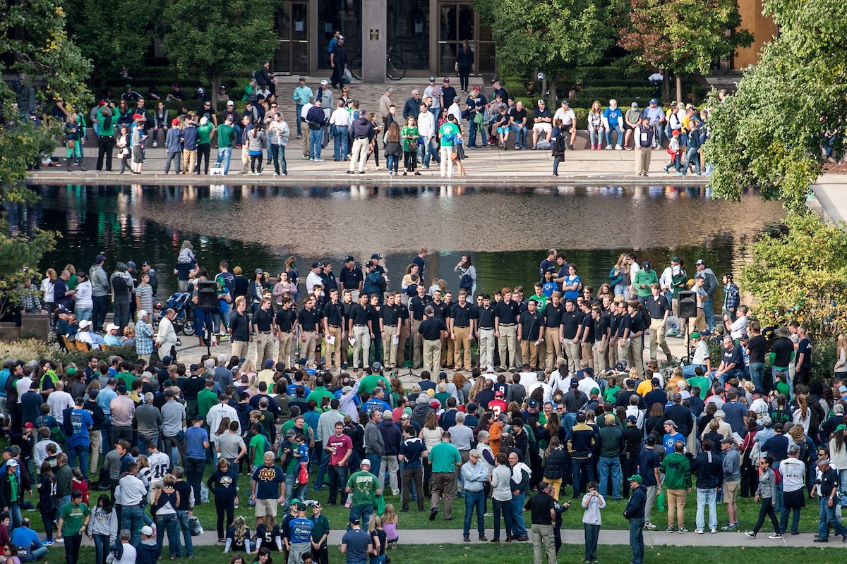 Head to the reflecting pool by Hesburgh Library to sing the Alma Mater with the Glee Club at 12:30 p.m.pic.twitter.com/i074ehLheF