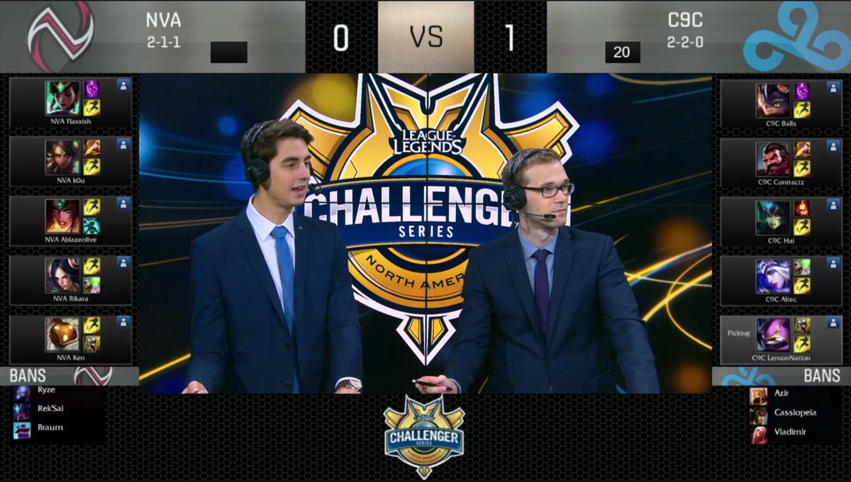#NACS A win for@Cloud9 Challenger means they secure the 1st seed! Can@NovaEsportsGG take Game 2?pic.twitter.com/gYVzAyjk7A