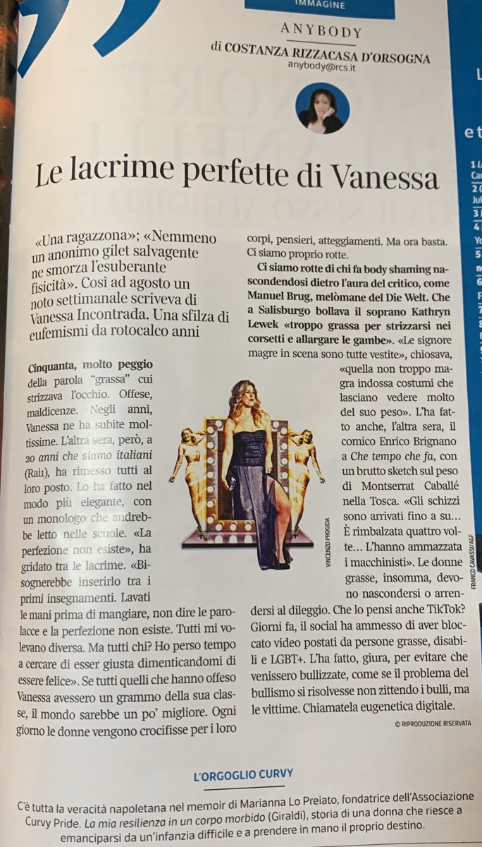 #anyBody@7Corriere,@VaneIncontrada rimette tutti a posto dopo anni di offese. Per me donna dell’anno! Ci siamo rotte del body shaming. E poi un messaggio x@EnricoBrignano dopo il suo sketch da Fazio: triste che nel 2020 si faccia comicità sul peso. Smettiamola, grazie.pic.twitter.com/44Q077Wxg0
